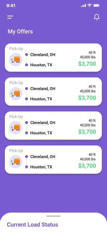 After searching for a load, you can make a bid on the offer(s) that you received.