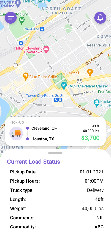 Once an offer is accepted, your dispatcher will approve the load and you'll receive confirmation to route to the pick up location.
